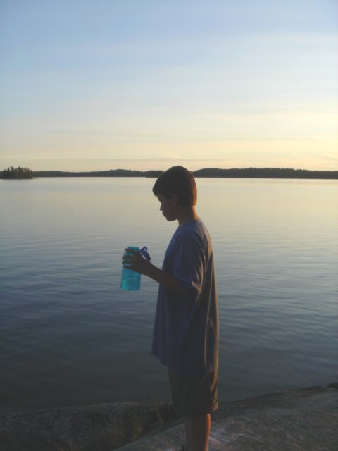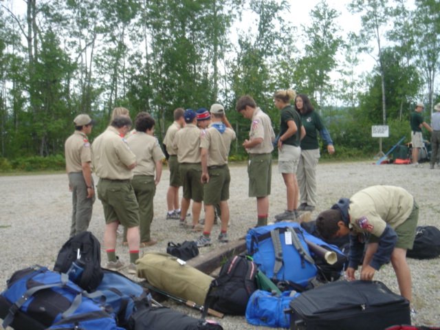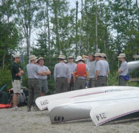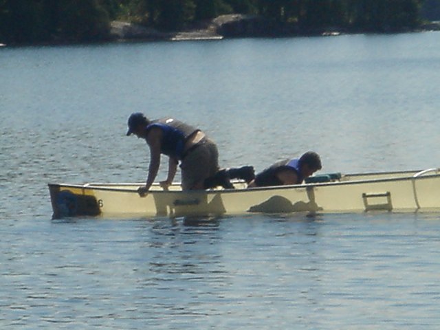 High Adventure Atikokan Canoe Trip 2004, Page 6 A Canoeing Merit Badge requirement to change places in a canoe without tipping over. Can you believe it? Another Troop 61 at the same camp at the same time. We are leaving to go home and they are just leaving to start their adventure. Return to High Adventure Main Page