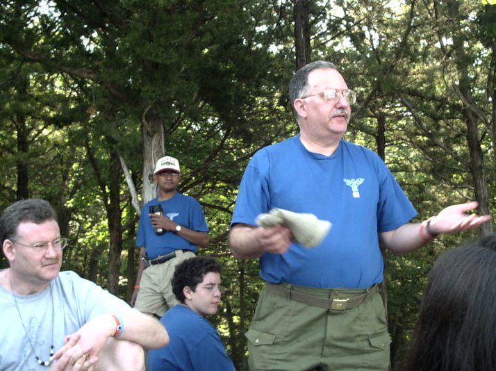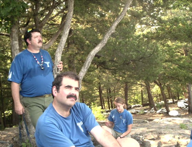 One of Troop 61 Assistant Scoutmasters was inspired to write this poem about this special place called "The Point". This bluff overlooks a scenic view of the Truman Reservoir. It is a quite and peaceful place surrounded by cedar trees. We come here every year on Sunday morning to reflect and share our feelings about the past, the present and our future. This Sunday morning is even more special. It is Father's Day and Visitors Day. A first year camper shares his thoughts. Our Camp Scoutmaster, Jonathan. One of the Lightning Buffalo Clan. Our troop Scoutmaster, Ron Reflecting on their thoughts. |